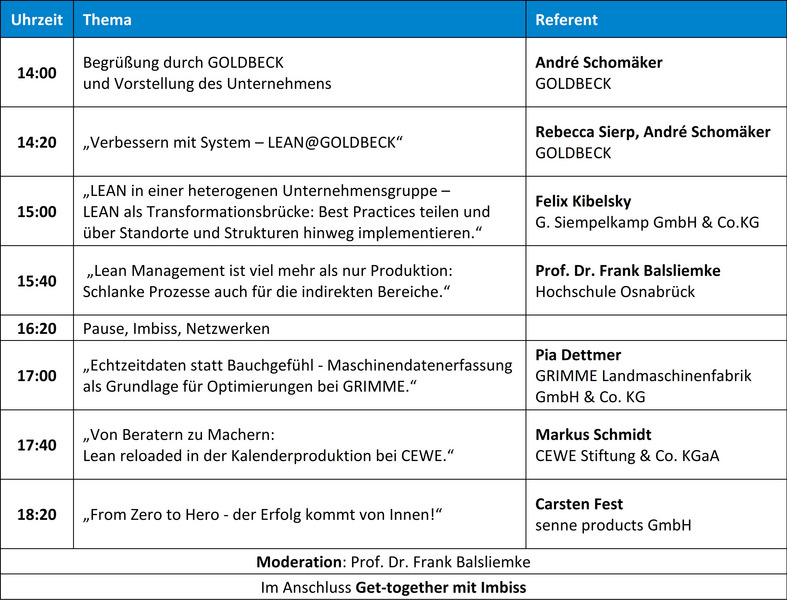 - „Erfolgreiche Einführung von Lean Management: Die Mitarbeiter richtig mitnehmen!“ Prof. Dr. Frank Balsliemke, Hochschule Osnabrück